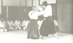 Aikido has been described as "moving Zen". As with all Zen arts, though the final aim is personal transformation, the focus of the training hall is pratical. Repetition and hard work are required to master the fundamentals of movement, timing and breathing. "This is not mere theory", O Sensei said, "you must practice it". The rewards of training include stamina, flexibility and improved muscle tone. But, effectiveness does not depend on size or strength. Ultimately, it is the attack that brings down the attacker. Above all, training is an encounter with oneself. The student of Aikido seeks to identify and gain control of the ways in which he or she reacts to opposition, and so learns to remain centered under all conditions. |